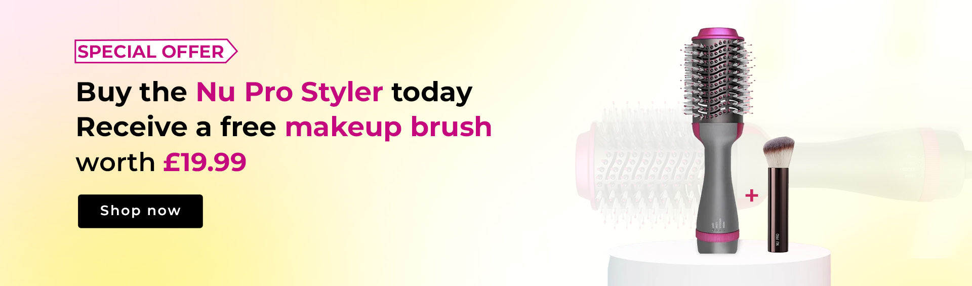 Apply heat protection spray to wet hair and brush through with Nu Pro Brush to prep, protect and detangle your hair.