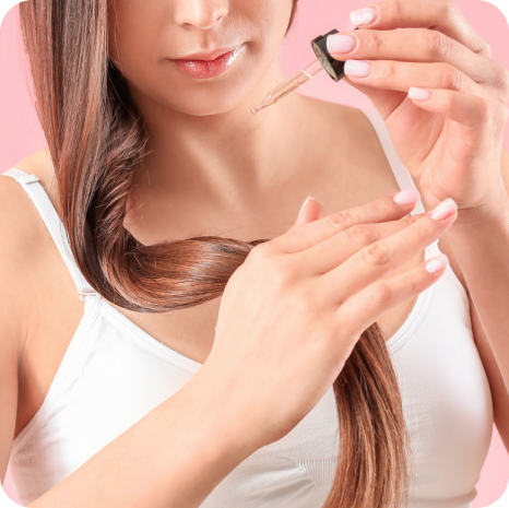 Apply your go-to hair oil to dried, styled hair, focusing on the ends and evenly smooth a small amount through the remaining hair for extra shine and hydration!